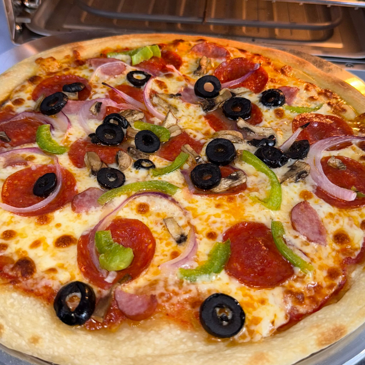 TOMATO SAUCE, MOZZARELLA CHEESE, PEPPERONI, ITALIAN SAUSAGE, ONION, BELL PEPPER, MUSHROOMS, BLACK OLIVES