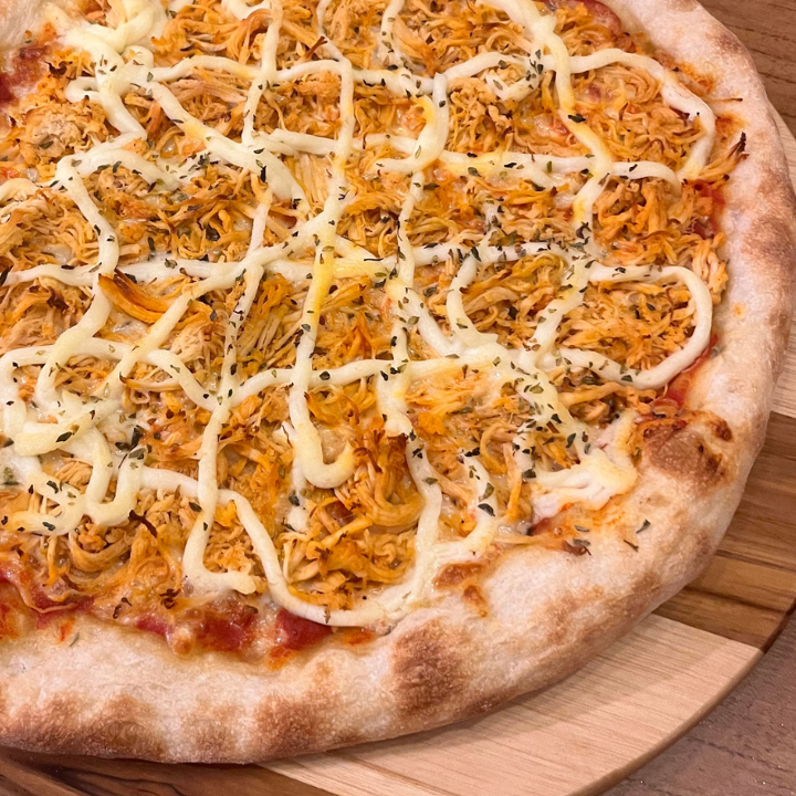 TOMATO SAUCE, MOZZARELLA CHEESE, SHREDDED CHICKEN, CATUPIRY (BRAZILIAN CREAM CHEESE)